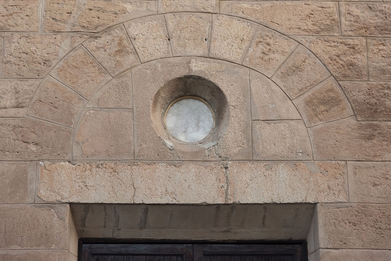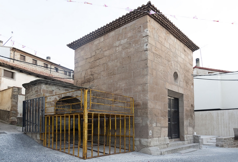 El acceso se realiza por el muro sur, a través de una portada adintelada, sobre la que hay un arco de descarga de medio punto, en cuyo centro hay un óculo ciego, abocinado en ambas caras y que constituye el único punto de iluminación del edificio.