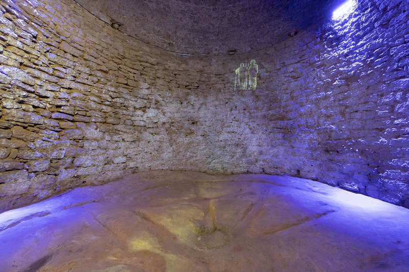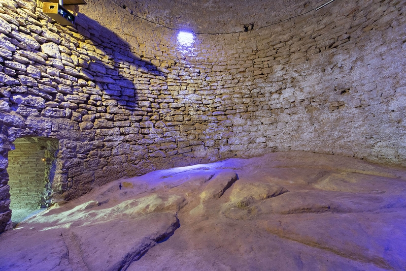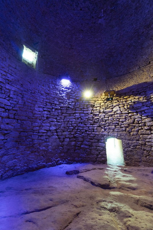 Construcción de planta circular realizada con mampostería y cubierta por una falsa cúpula hecha mediante el proceso de aproximación de hiladas.